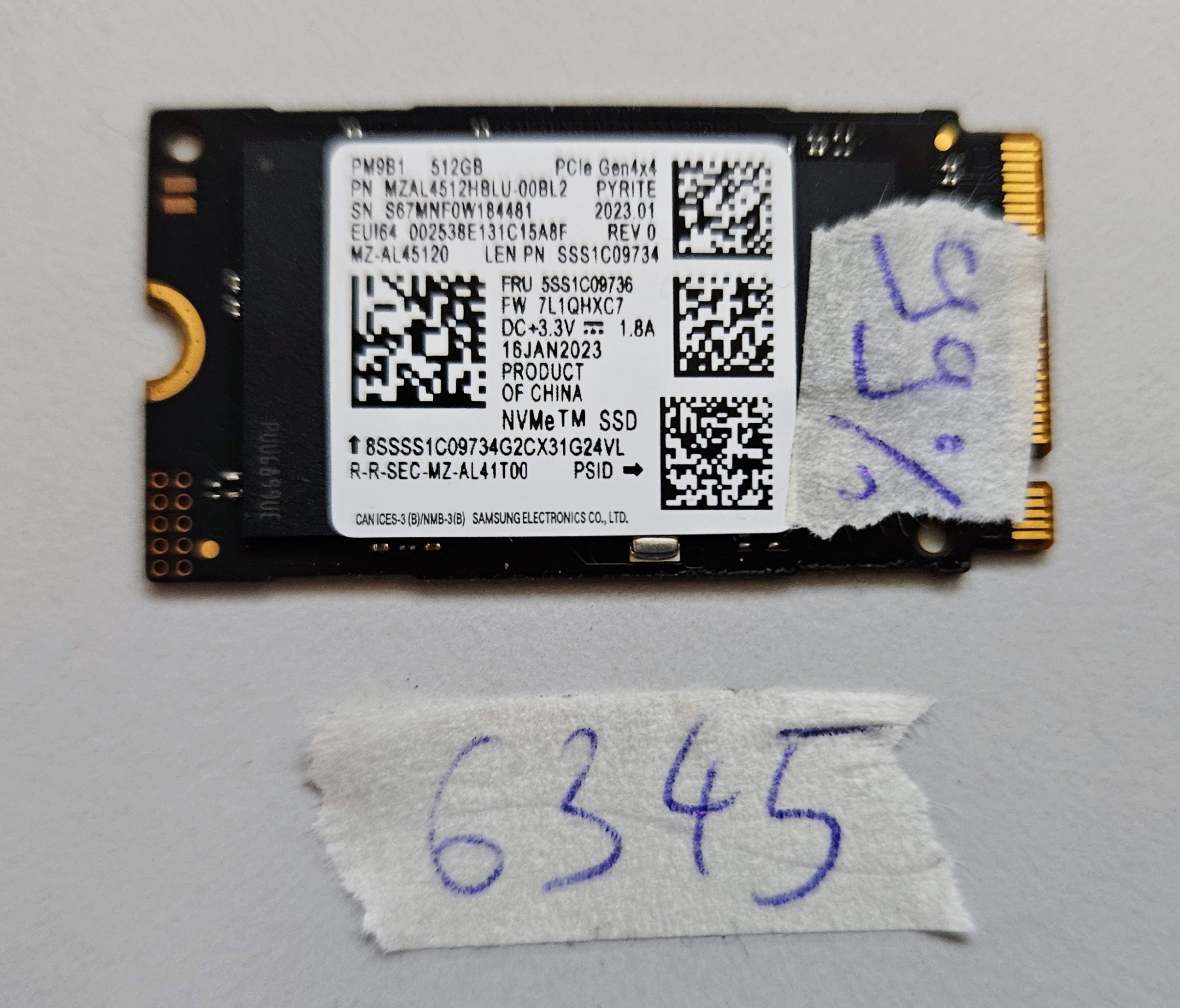 Genuine Samsung PM9B1 512GB M.2 2242 NVMe SSD (MZ-AL45120) with 99% health. High-speed OEM solid state drive, fully tested and ready for installation. Real photos of the exact laptop part you will receive.